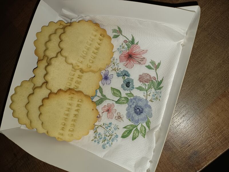 Autant Salé pour les apéritifs (tapenades, biscuits, feuilletés, etc…) que Sucré (Biscuits (personnalisable), différents chouchous, etc…). Pour cela nous utilisons essentiellement des produits locaux et de qualités.